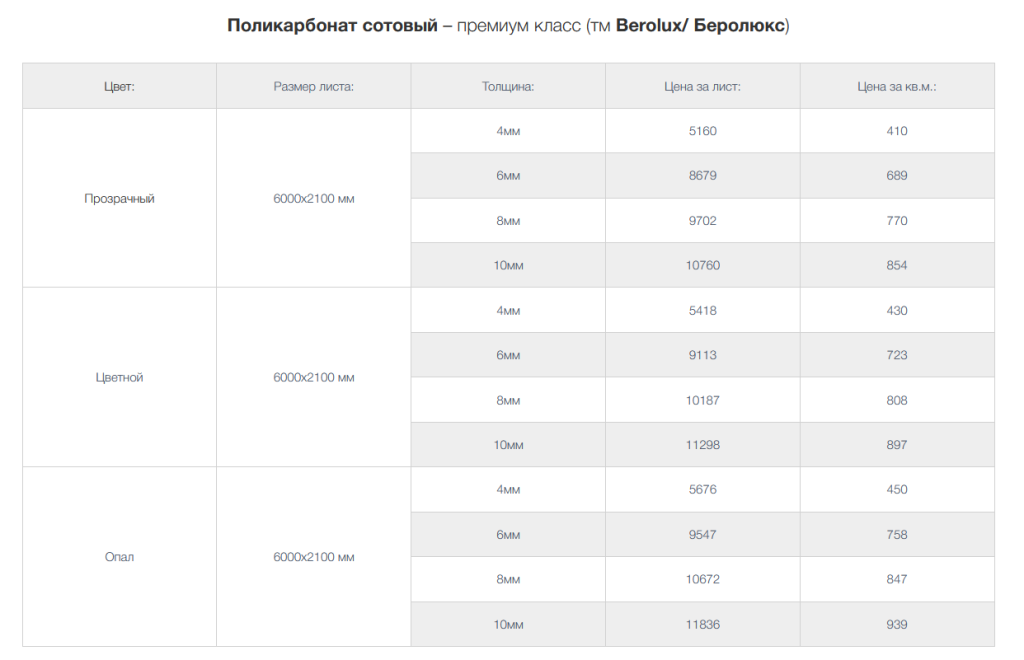- Сотовый поликарбонат толщиной 8–10 мм — для строительных конструкций